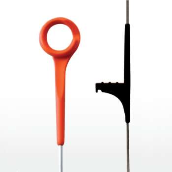 Sehr robuster, ergonomischer und langlebiger Zaunpfahl. Der Ring-Top Pfahl ist sehr robust, da keinerlei Verschleiß auftritt. Das liegt an der Verwendung von glasgefülltem Nylon. Der Pfahl ist ergonomisch dank seines breiten Fußes und des Drahthalters, der nicht ineinander gerät, wenn Sie ein ganzes Bündel dieser Pfähle tragen. Die Nachhaltigkeit wird durch den UV-Schutz und die Verwendung von hochwertigem Nylon und eines verzinkten Pfahles bedingt. Die maximale Zaunhöhe mit einem Ring-Top Pfahl beträgt 0,80 Meter.